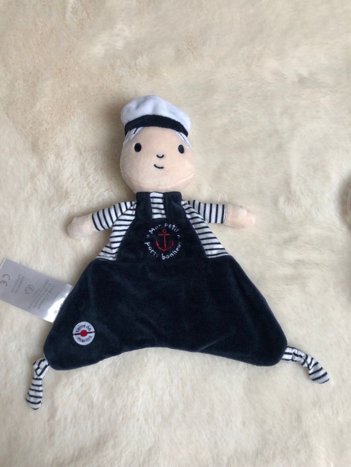 Lot terre de marins - doudou plat petit garçon + hochet hérisson à billes - photo numéro 3