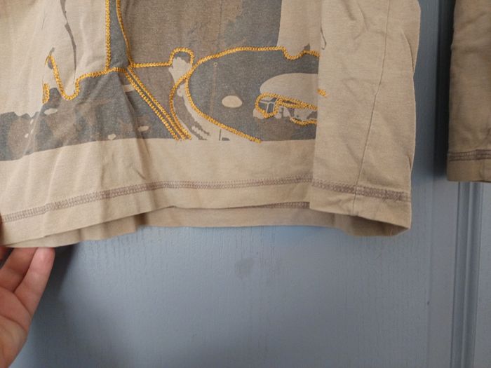 Vend tee shirt manche longue beige en très bon état de la marque Sismix et de taille 12 ans. Broderie orange en très bon état aussi Pas de tâche ni de trou