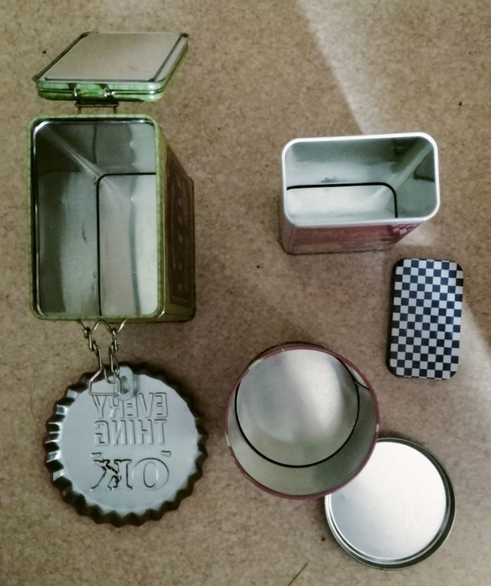 lot de décorations vintage comprenant différents éléments. - Type de produit : Lot de décorations , boîte a café carré et ronde , boîte a pâte et déco murale - Style : Vintage / rétro - Matières : Métal - Couleurs : Multicolore - Très bon état 9€90