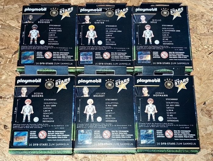 Playmobil série limitée 50 ans playmobil, l'équipe d'Allemagne, lot de 6 boîtes neuves non ouverte, Niklas süle, Antonio rüdiger, Mathias ginter, Robin gosens, Jonas hofmann, Julian brandt Boîte neuve , non ouverte, scellées