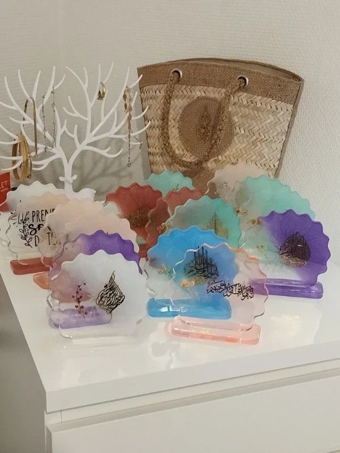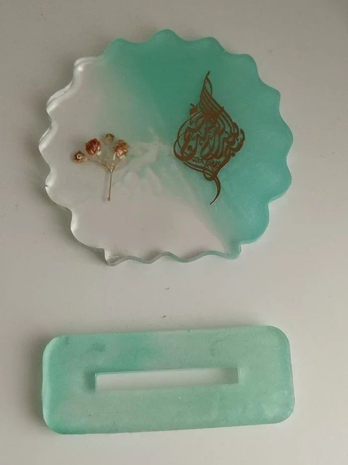 idée cadeau ornement bureau coiffeuse couvre tasse en résine et plantes naturelles abr010