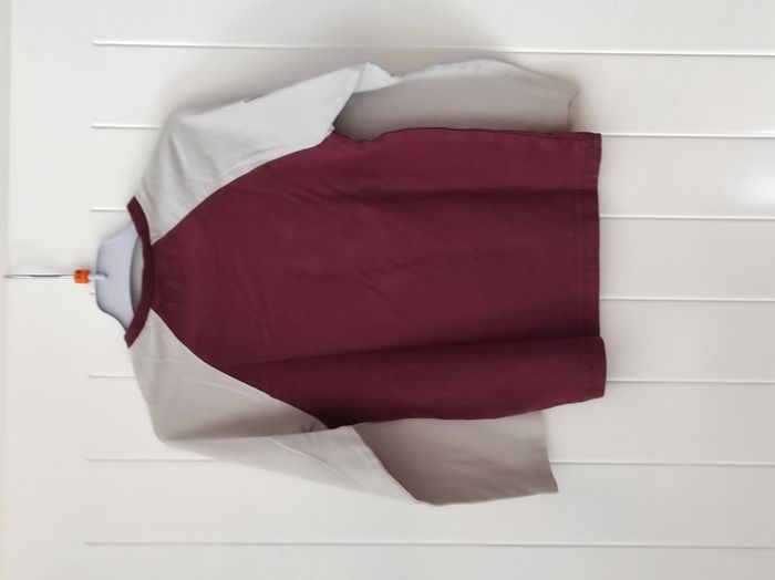 T-shirt manches longues garçon – 4 ans – Bordeaux & beige – Très bon état - photo numéro 2