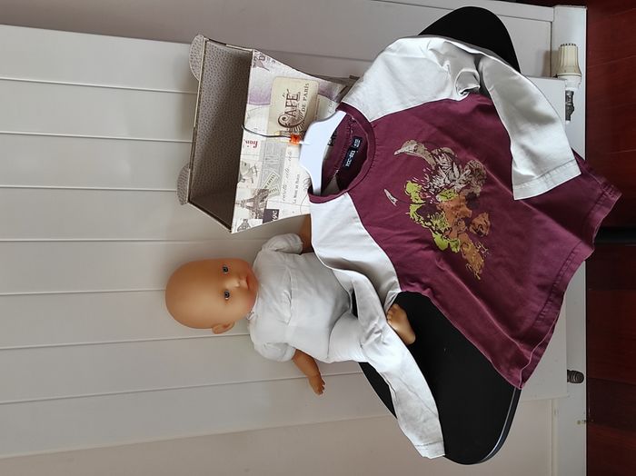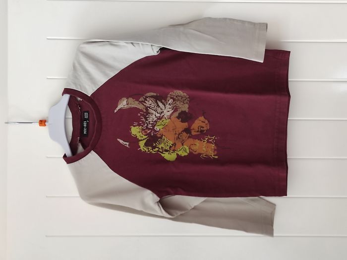 "T-shirt manches longues pour garçon, taille 4 ans. Coloris bordeaux et beige avec motif têtes d’animaux, original et sympa 🐾 🔎 État : Très bon état Idéal pour la mi-saison ou sous un pull en hiver."