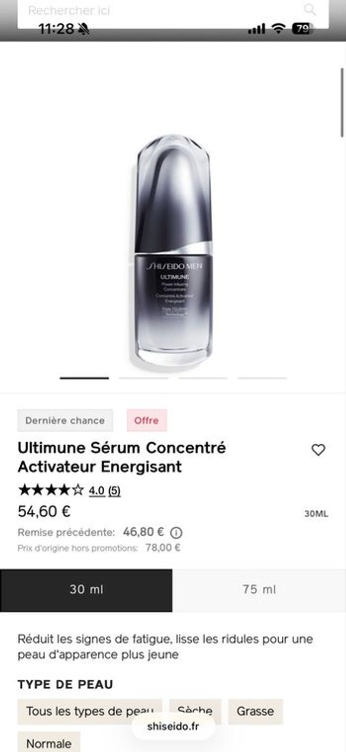 Shiseido Men ultimune Concentré activateur énergisant 1 sérum 30ml Neuf scellé
