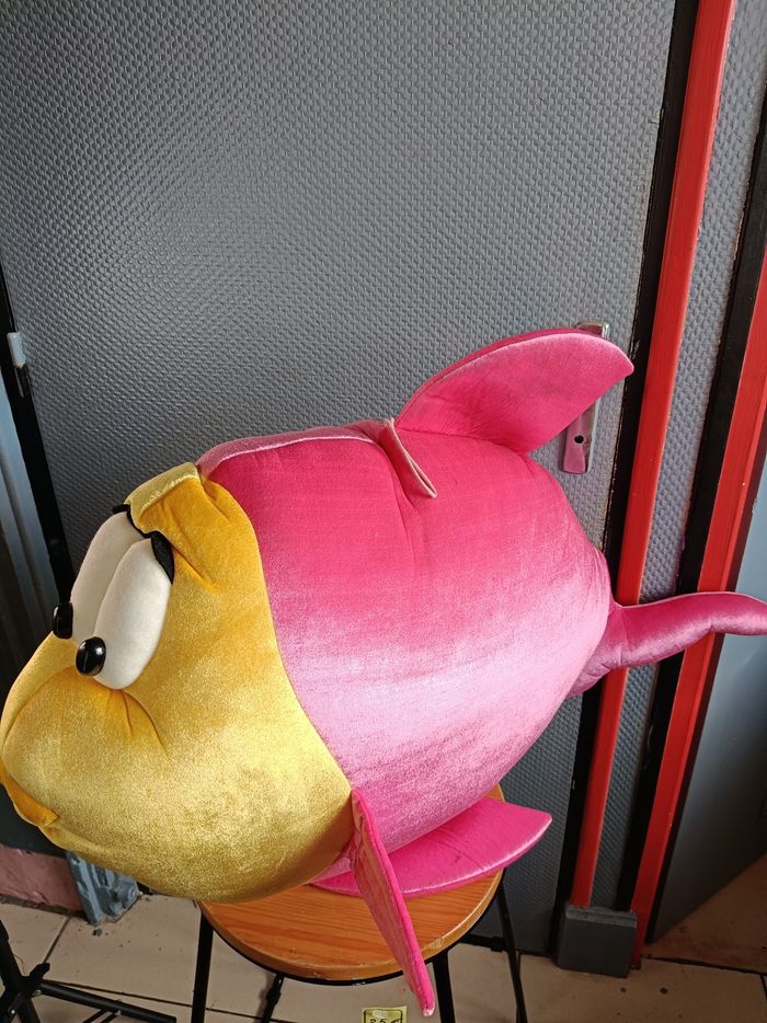 🐠 Grande peluche poisson rose et jaune – env. 100 cm – Très bon état Je vends une grande peluche en forme de poisson rose et jaune d’environ 1 mètre de long (voir photo avec mètre). ✨ Très douce ✨ Idéale pour décorer une chambre d’enfant ✨ Parfaite comme coussin géant ou compagnon de sieste ✨ Bon état général Couleurs vives (rose/fuchsia et jaune), grands yeux rigolos, matière toute douce type velours. 📏 Longueur : environ 100 cm 🏠 Maison non-fumeur Remise en main propre possible ou envoi soigné. N’hésitez pas à me contacter si vous avez des questions 😊