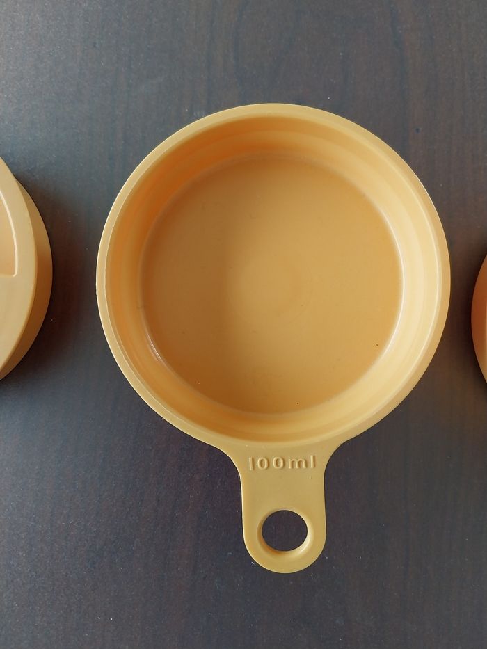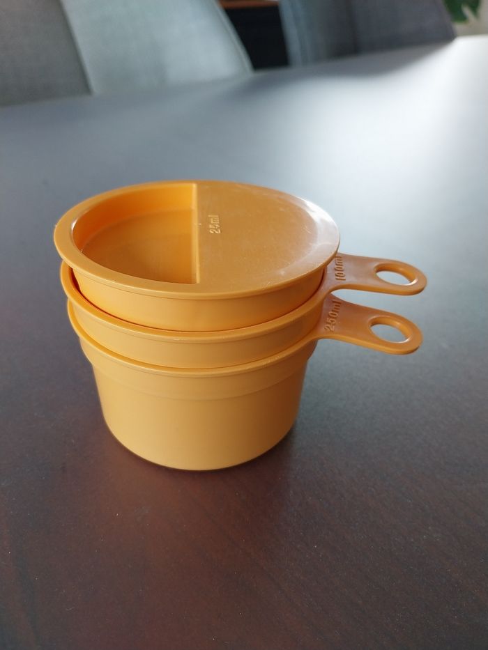 Tasses à mesures tupperwaere, 25ml, 50ml, 100ml, 250ml, en très bon état