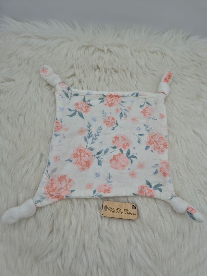 Doudou carré plat en tissu lange blanc imprimé de roses. 4 noeuds. Marque : Vertbaudet, collection eau de rose État : comme neuf, étiquettes coupées Vous achetez le doudou que vous voyez. Entièrement vérifié. Une recherche particulière ? Tout n'est pas en ligne, n'hésitez pas à me contacter 😊 #VDR_A43 #VDR_VERTBAUDET