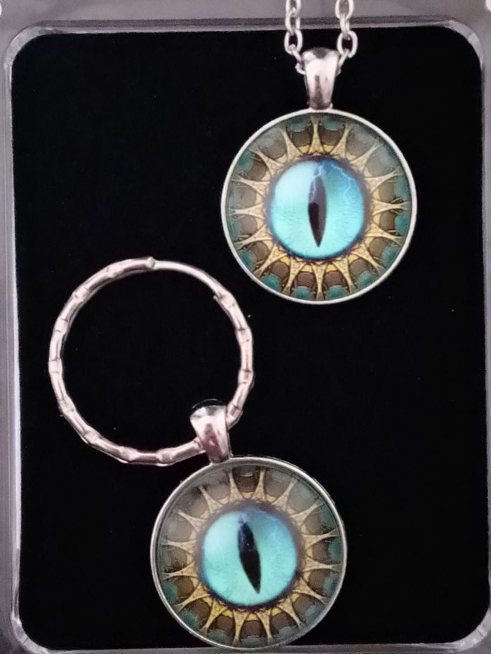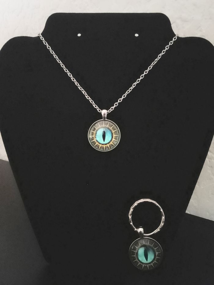 Ensemble chaîne + pendentif + porte-clés celtique. Pendentif, porte-clés : mandala oeil bleu. (celtique, bohème, protection, spirituel, idéal cadeau) DESCRIPTIF : Couleur : bleu, turquoise, argenté. Taille chaîne : 50 cm. Diamètre pendentif : 2,8 cm L * 2,8 cm H. Envoi rapide et soigné.
