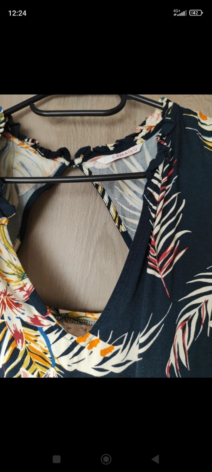 Vends une robe Camaïeu. Acheté pour une occasion porté une fois seulement et relavée (normal😂). Légère et agréable à porter. Ouverture en haut du dos. Étiquette coupée et correspond à du 40 ou L.