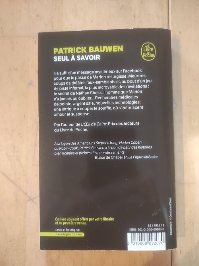 Seul à savoir Patrick Bauwen Livre de Poche 2019 Ex. hors commerce  - photo numéro 4