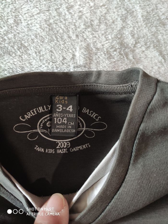 Tee-shirt manches longues garçon taille 3/4 ans en très bon état, pas de tâches ni trous. Couleur marron avec un peu de blanc au niveau du de chez Zara kids. Taille correctement et peu porté par un seul enfant sur une saison.