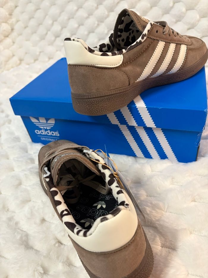 Bonjour je vends cette paire adidas Handball Spezial Chalky Brown Cow Print, en 39 jamais portée Envoie rapide et soigner 🚚