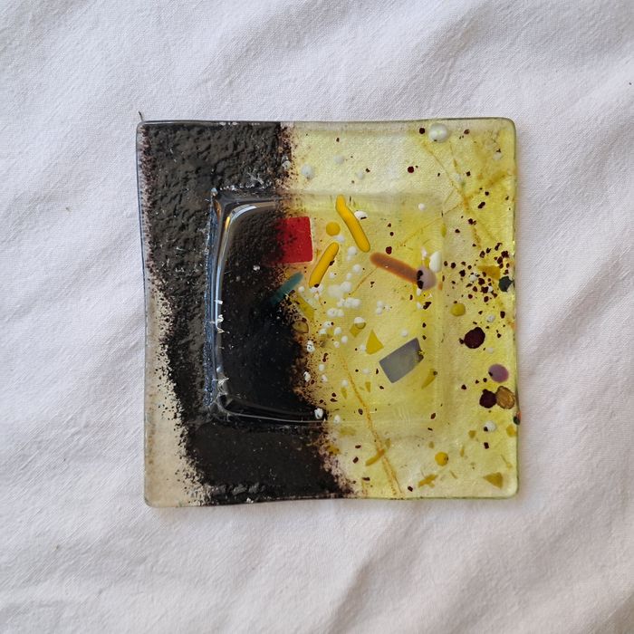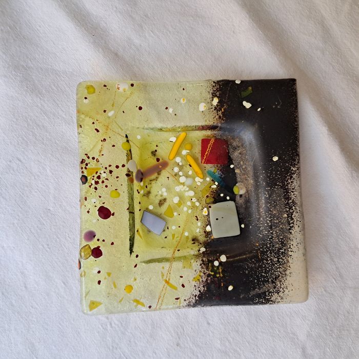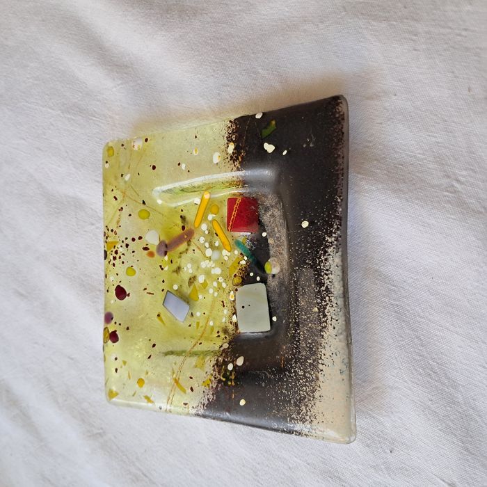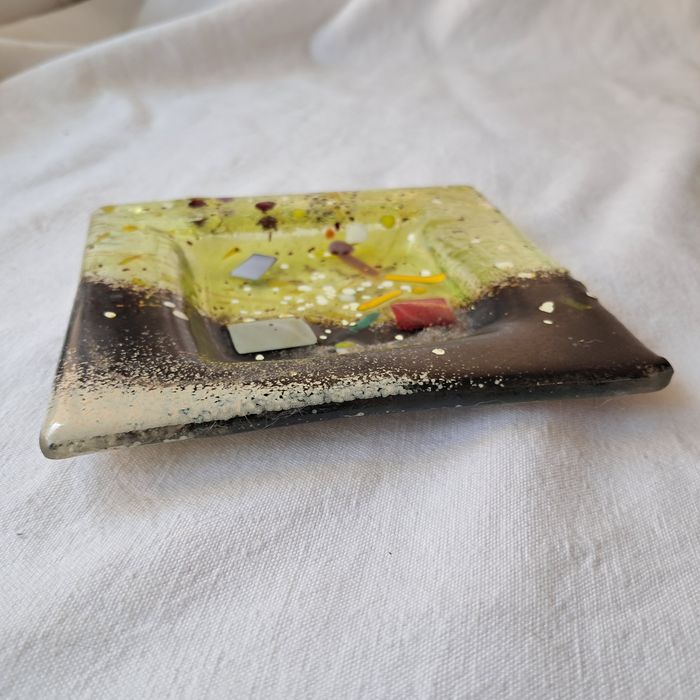 Vide poche cendrier en verre multicolore Création unique Fait main Dimensions : 11 x 11 cm Poids : 157 grammes Neuf, jamais utilisé