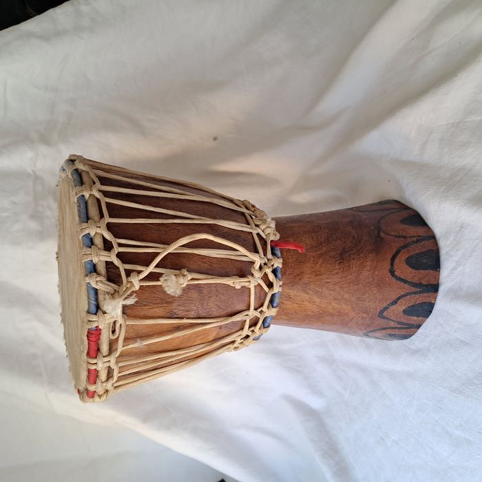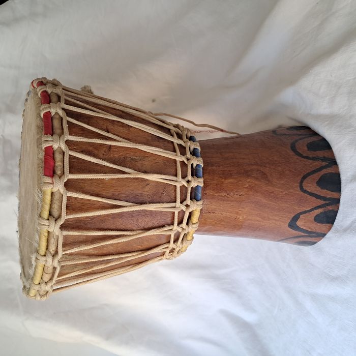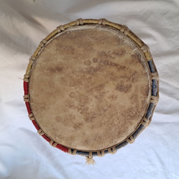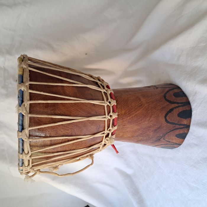 Djembe peau de chèvre et bois Vintage Hauteur : 34 cm Poids : 2,7 kg Très bon état