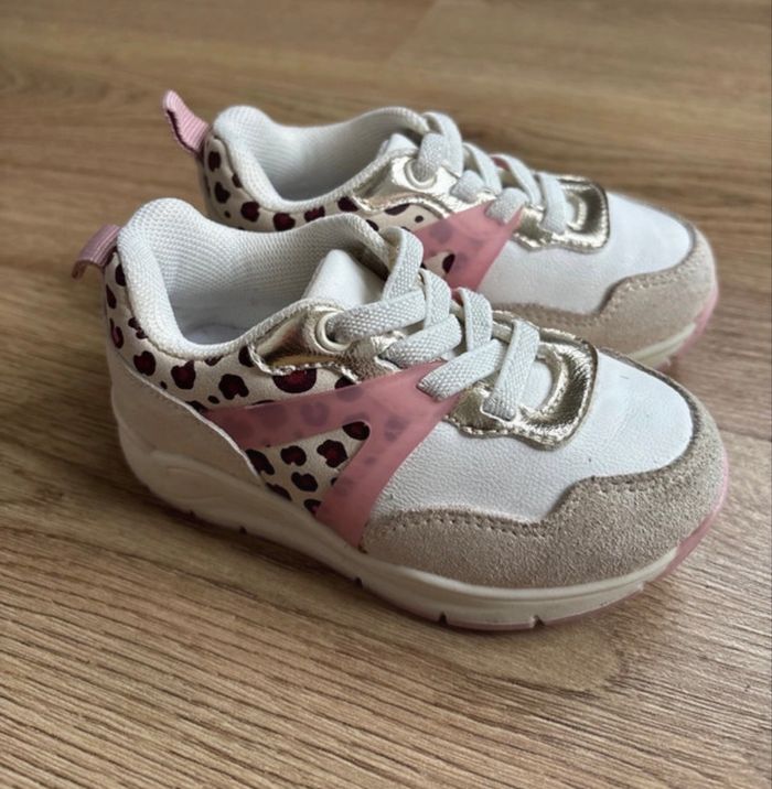 Article : Baskets Couleur : beige, blanc, rose Motif : léopard Marque : Obaibi (collection 2025) Taille : 20 Prix : 8€ Envoi possible ou remise en main propre (44)