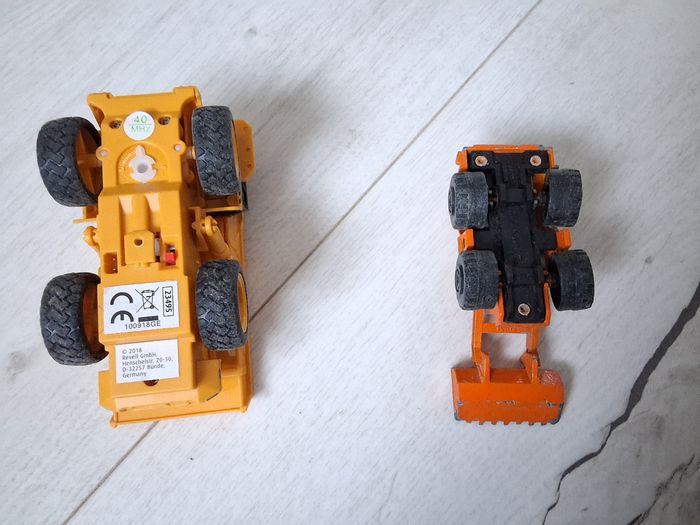 Le tracto majorette : peinture ture enlevée cf photos, 8 cm de long Benne : marque inconnue, longueur 9 cm , excellent état mais ne fait plus de bruit