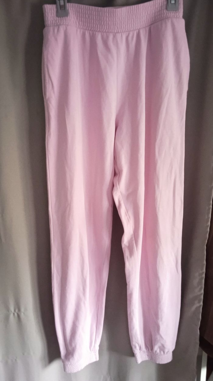 Bonjour je vends un beau jogging d'un joli rose le bas a été mis plus que le haut il taille M le haut taille L le port est une forme courte acheté 19.99 € pour le bas et 19.99 € pour le hau.
