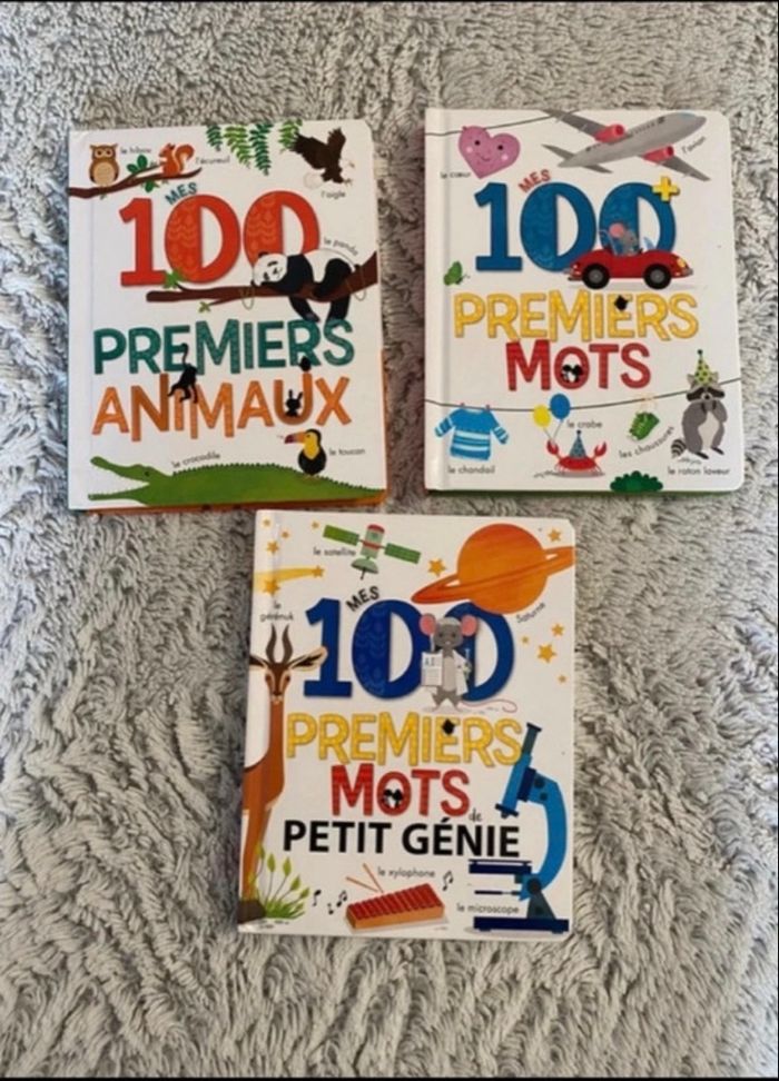 lot de 3 livres les 100 premiers mots, les 100 premiers animaux et les 100 premiers mots petit génie livres en très bon état. livres cartonnés envoyés bien protégés
