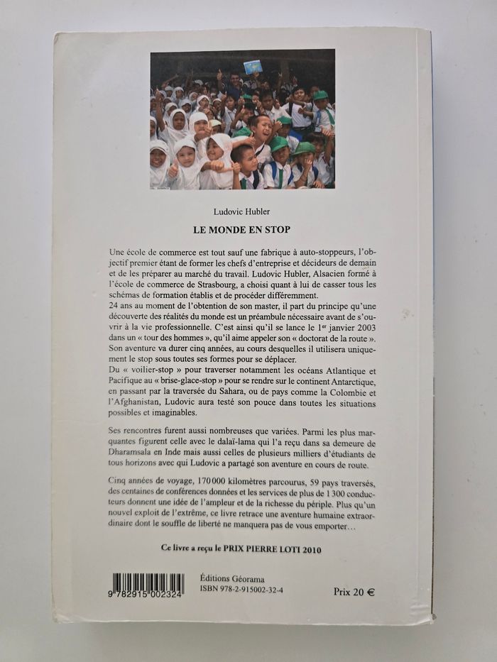 En tres bon etat mais pas neuf a ete lu Une histoire vraiment Livre ayant reçu le PRIX PIERRE LOTI 2010 Écrit par Ludivic Hubler L aventure commence le 1er janvier 2003 et durera 5 ans avec pour unique déplacement le stop et 170 000 km , 59 pays Éditions Georama