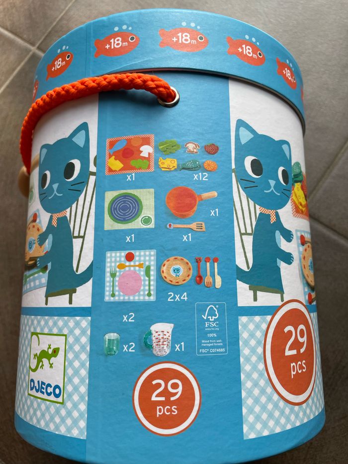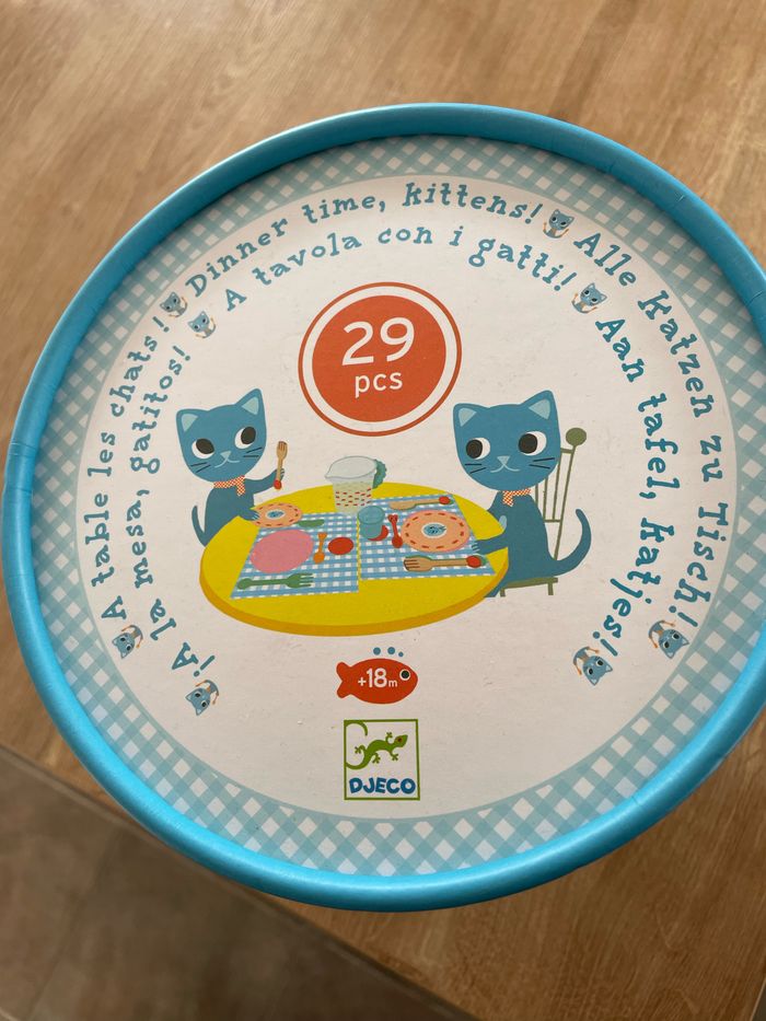 Dînette Imitation Marque Djeco À table les chats 29 pièces Jamais ouvert, totalement neuf Emballage d’origine À partir de 18 mois Couverts en bois, aliments en feutrine
