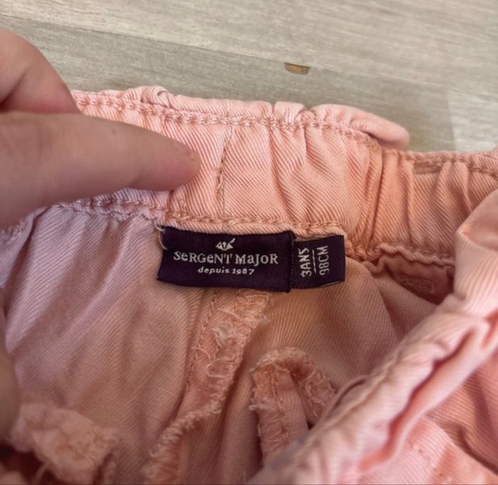 Article : pantalon léger avec ceinture Couleur : rose pale Motif : / Marque : Sergent Major Taille : 3 ans Prix : 3€ Envoi possible ou remise en main propre (44)