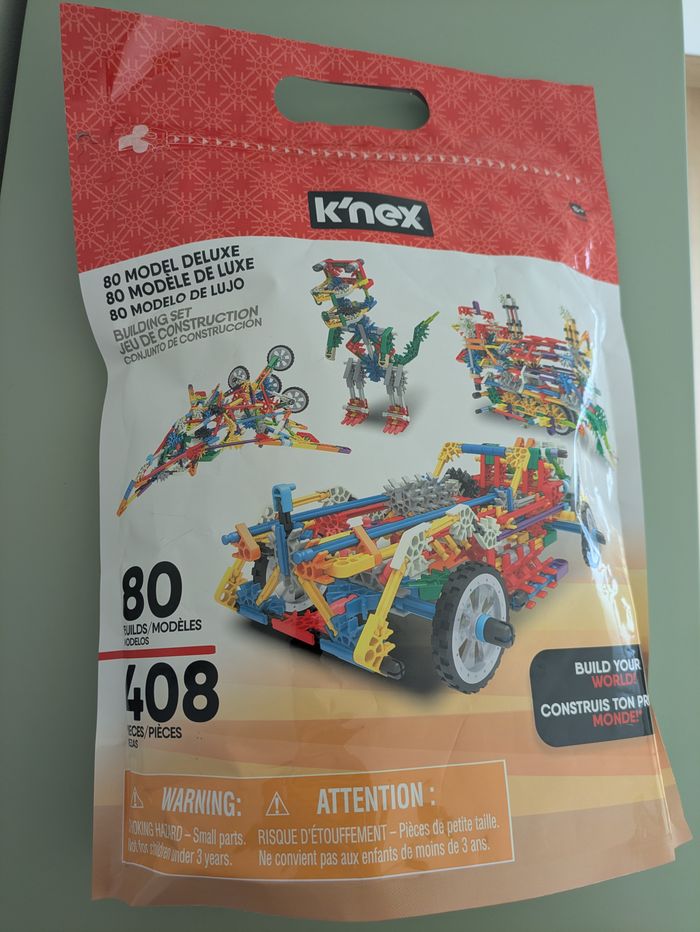 Jeu de construction K'NEX Imagine 80 Modèles Deluxe 408 pièces Produit jamais déballé. 408 PIÈCES POUR 80 MODÈLES : Variété de constructions possibles pour des heures de jeu. SAC DE RANGEMENT INCLUS : Facilite l’organisation et le transport. JEU STEM : Stimule les compétences en science, technologie, ingénierie et mathématiques. PIÈCES ROBUSTES : Conçues pour une utilisation durable. PARFAIT POUR ENFANTS À PARTIR DE 7 ANS : Favorise la créativité et la motricité fine.