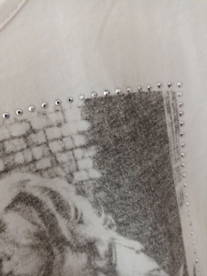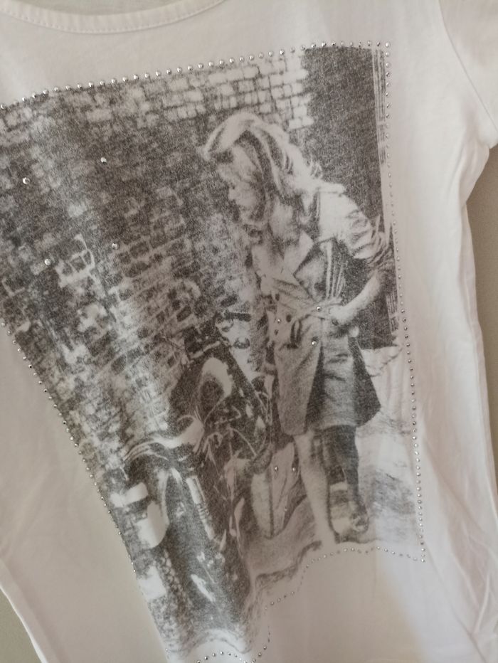 Tee Shirt manches courtes femme taille M/38 De marque In Extenso 100% coton Très bon état Blanc avec imprimé devant et strass #ap03femme38 #inextenso #teshirtmanchescourtes