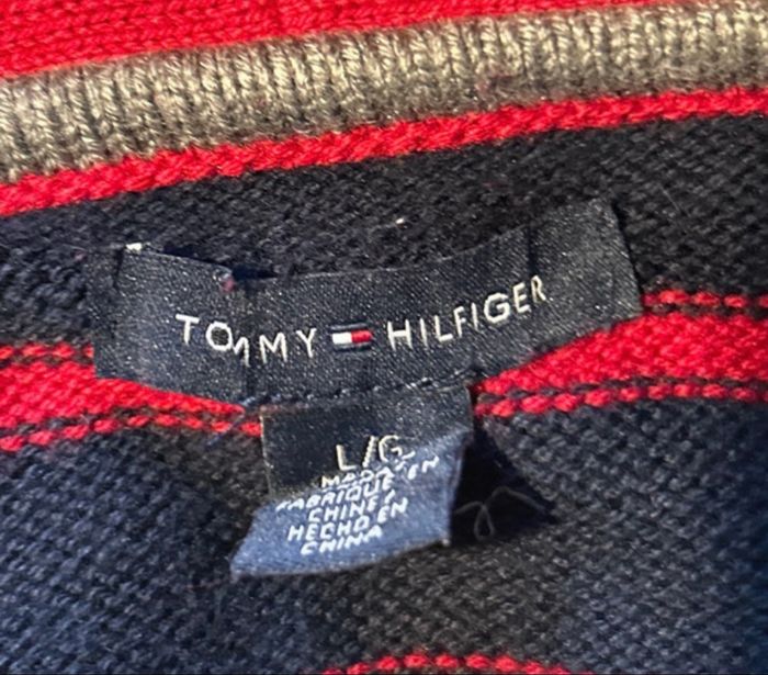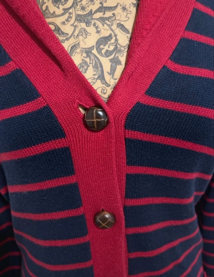 Cardigan rayé marine et rouge Tommy Hilfiger taille L - photo numéro 1