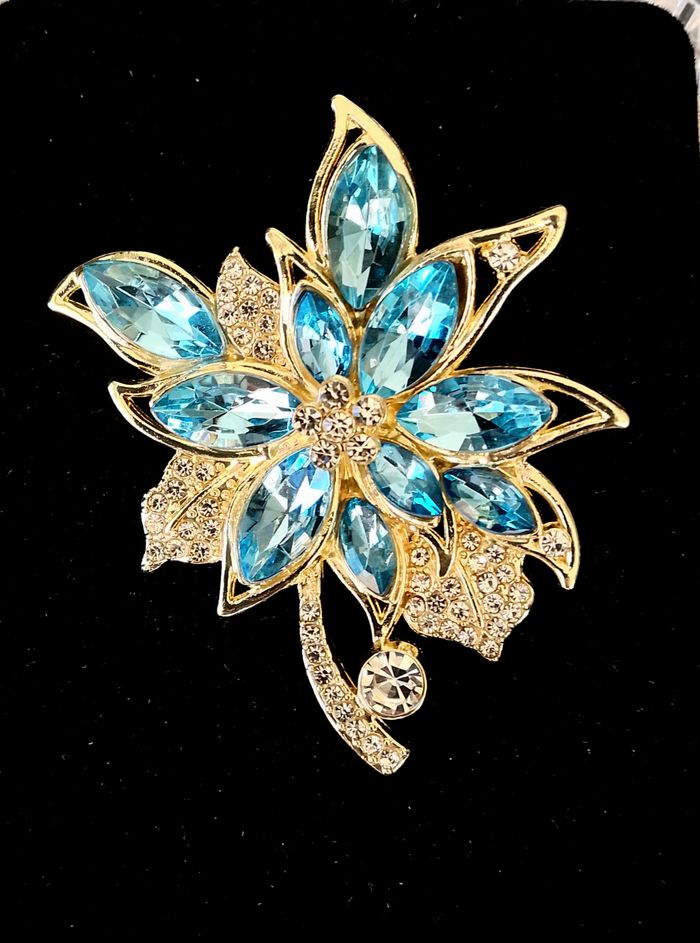 Broche élégante. Broche florale bleue (élégant, bohème, boho-chic, idéal cadeau) DESCRIPTIF : Magnifique broche florale bleue. Couleur : doré, turquoise. Dimension : 4,5 cm L * 4,5 cm H Envoi rapide et soigné.
