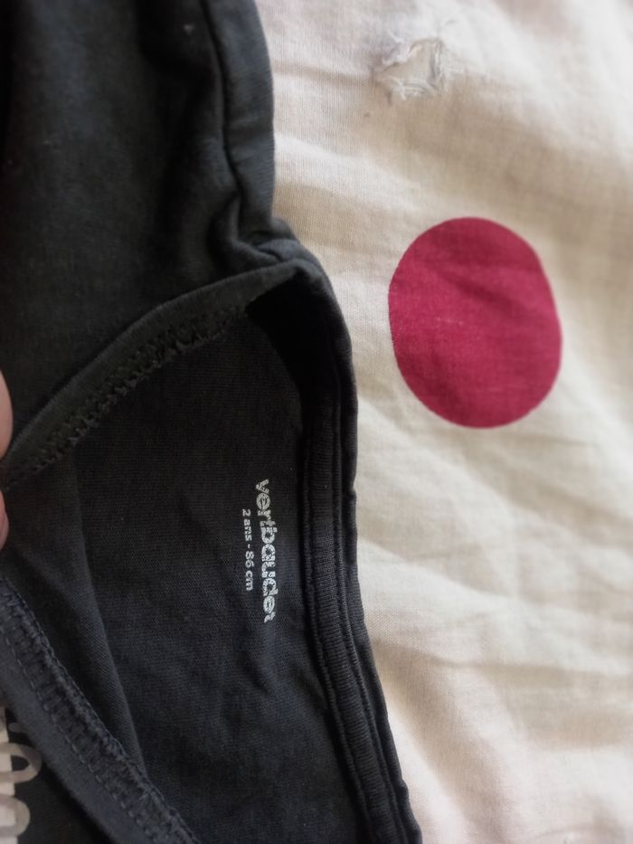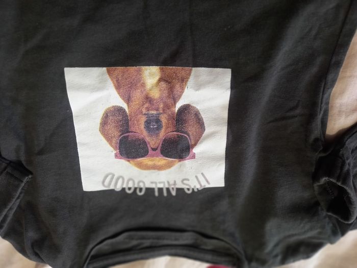 T-shirt chien manche longues taille 2 ans Dessin commence s'abîme Et col ebache.