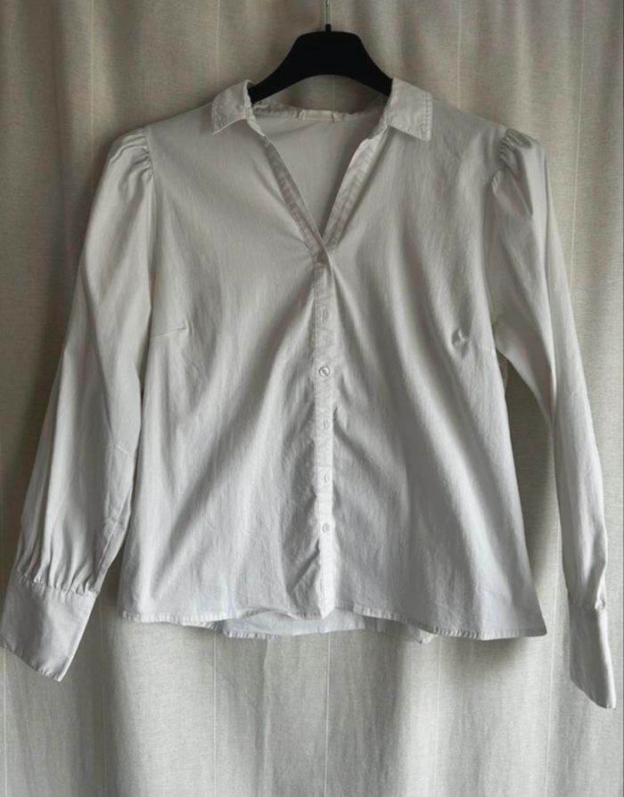Chemise avec légère épaulette Cintré au niveau de la taille Ps: un soutien gorge beige et conseillé car légèrement transparent