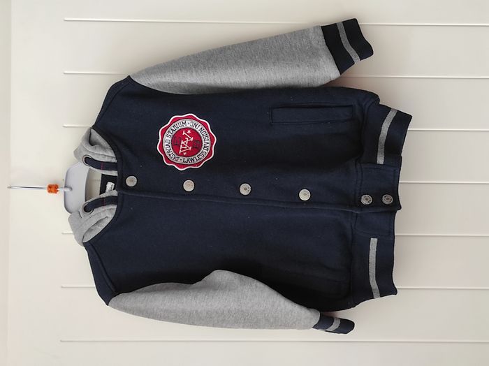 Veste style universitaire garçon – 4 ans – Gris & marine – Bon état - photo numéro 1