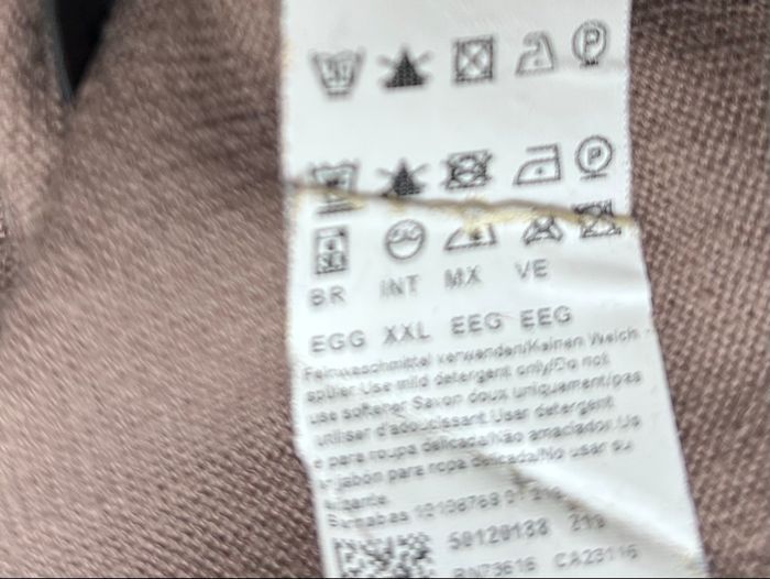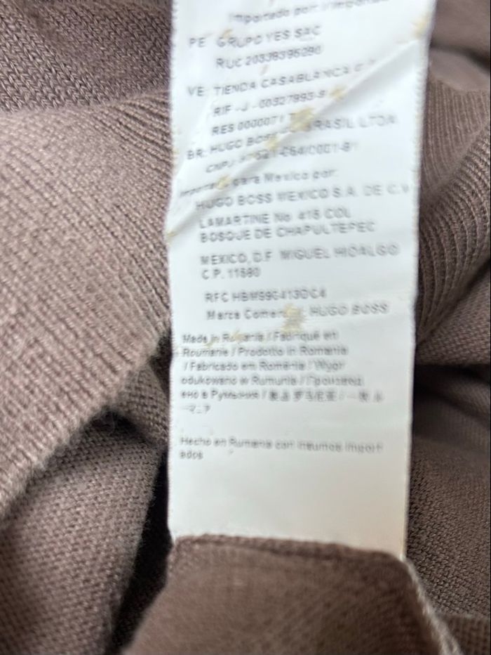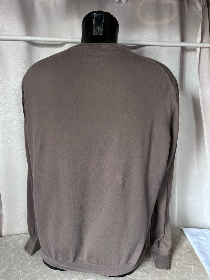 Pull marron encolure V XXL Hugo boss Carrure 52,5 cm Aisselle à aisselle 66,5 cm Longueur 70 cm Bon état car décoloration sur le devant mais se voit beaucoup moins que sur les photos