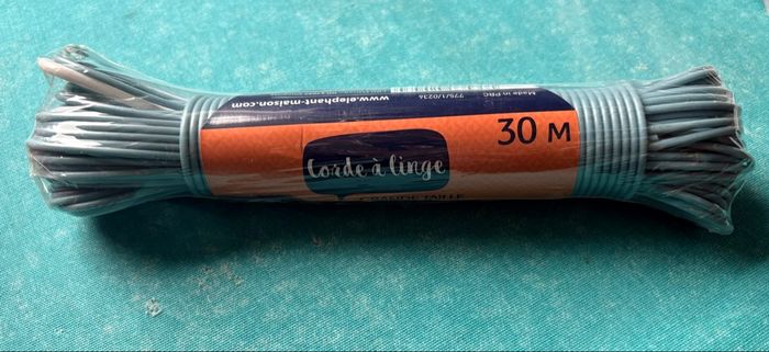 Corde à linge 30 mètres – Neuve sous blister – Élément acier