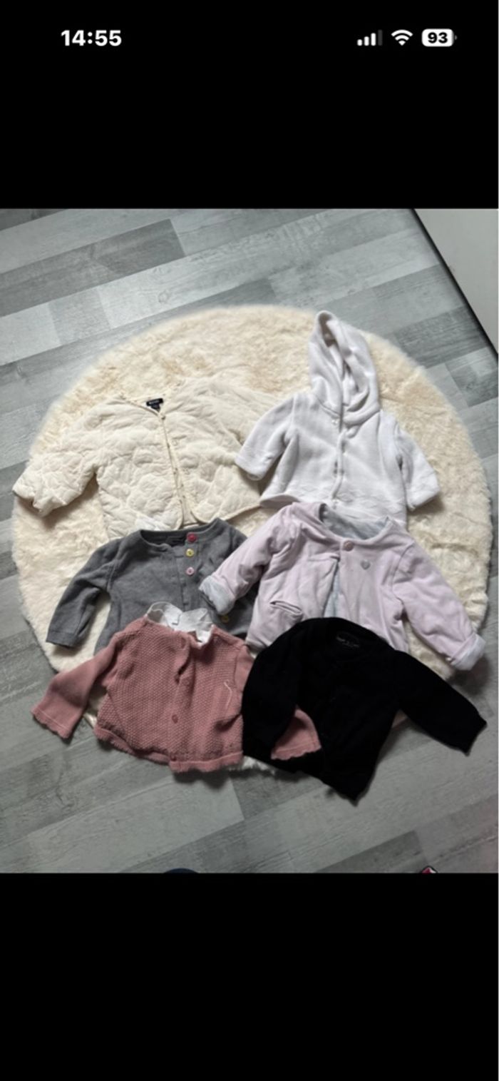 10 gilet fille et deux manteau en 3 mois Les deux rose sur la deuxième photo taille 1 mois