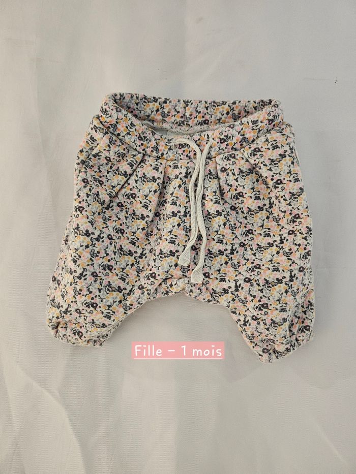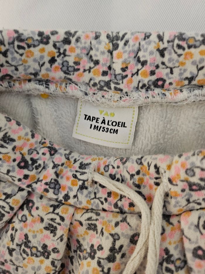 Pantalon avec taille et bas de jambes élastiques. Cordon à la taille. Blanc avec imprimés multicolores. Marque: Tape à l'oeil Taille : 1 mois
