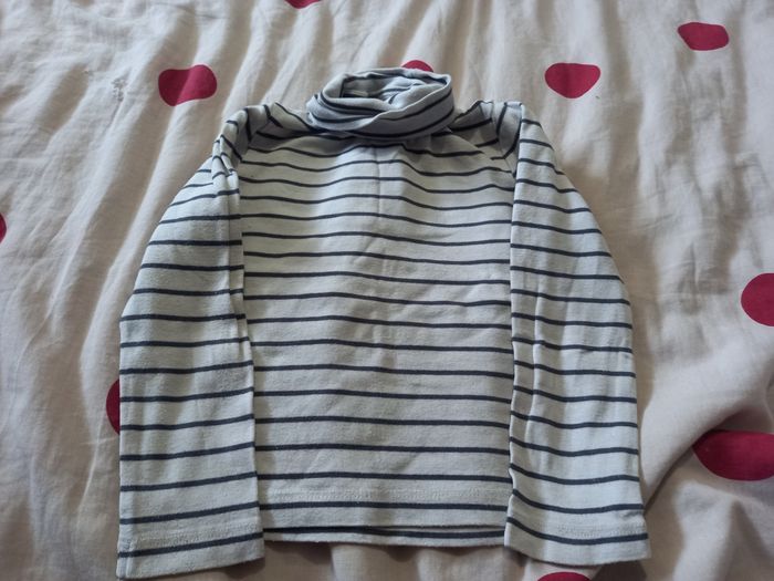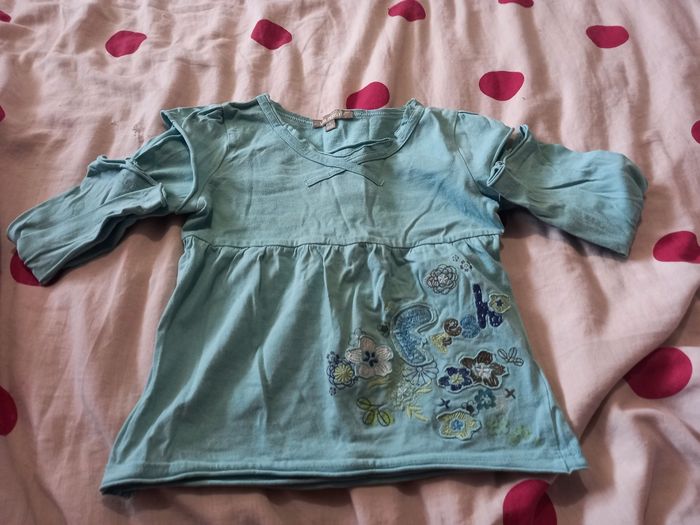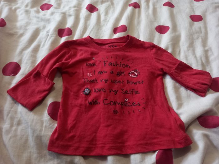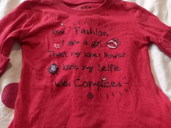 Lot de t-shirt manche longue taille 4 ans sauf le bleu taille 5 ans Ont bien vécu Le gris avec message tache de feutre dessus Et rouge commence à bouliche