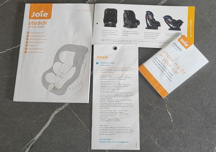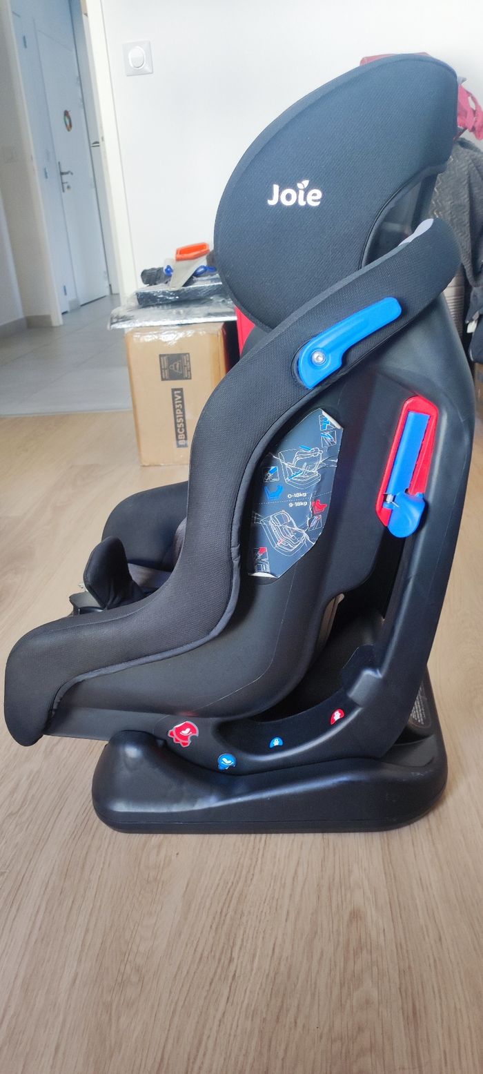 Je vends ce siège-auto Steadi de la marque Joie utilisable de 0 à 18kg (4 ans environ). Il permet une installation dos à la route dès la naissance, puis face à la route à partir de 9kg (1 an environ). L'enfant est installé en sécurité avec ses protections latérales renforcées, et son harnais réglable à 5 points molletonné. Il y a en plus un coussin réducteur ultra confortable et amovible inclus. Le siège a 4 positions d'inclinaison (1 dos à la route et 3 face à la route). La tétière et le harnais sont ajustable en hauteur. Le siège s'installe à l'aide des ceintures de sécurité 3 points du véhicule (non isofix). Les notices d'origine seront fournies avec le siège. Très bon état, aucune déchirure. A venir récupérer sur place svp, règlement en espèces. Foyer non fumeur et sans animaux.