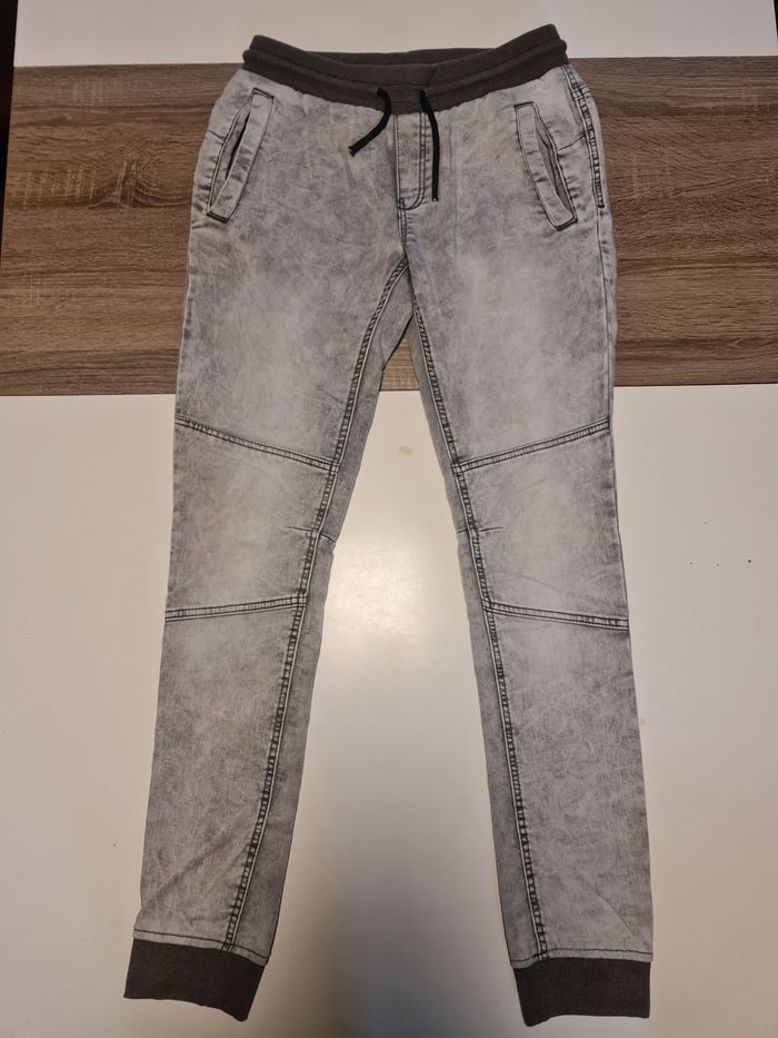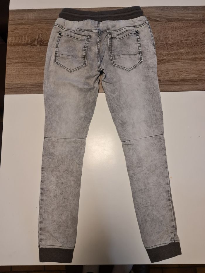 Jeans gris claire, resserré au niveau des chevilles. Taille 15+ans 176cm.