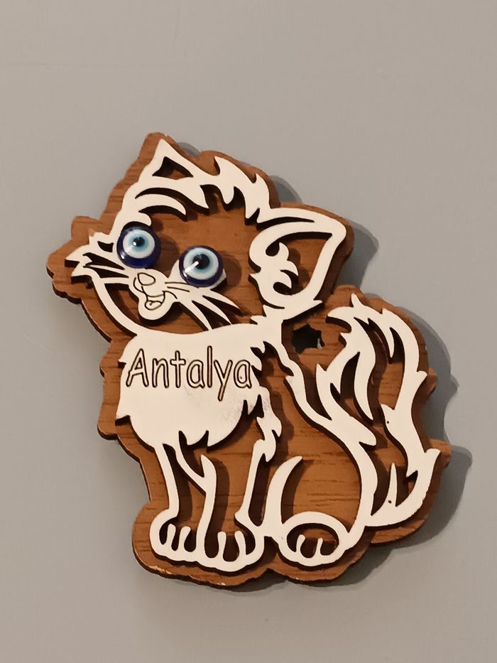 Aimant en bois Chat Antalya 9 cm x 6 cm en état cf photos