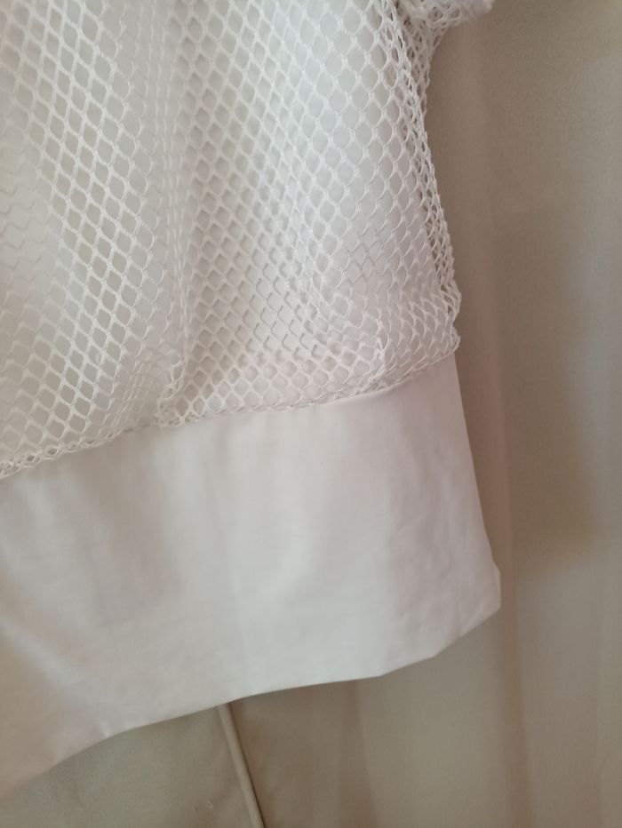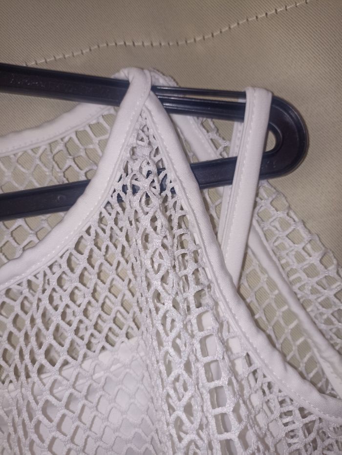 Tee Shirt femme Débardeur à bretelles et résilles Épaules dénudées Colori blanc Très bon état #ap03femme36 #hautfemme36 #teeshirtepaulesdenudees