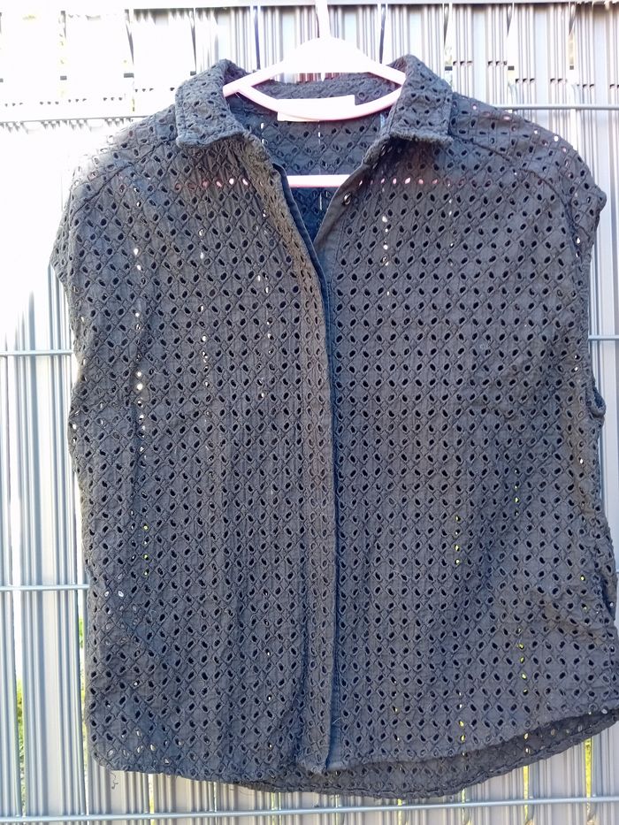 Chemisier noir à trous sans manches En coton Taille M 38 Marque Promod