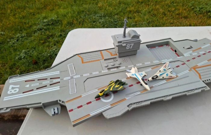 Je donne les avions avec ils ont bien vécu aile en moins roue en moins et peinture un peu partie Sinon le porte avion fonctionne très bien #stephsemmjouet #kingjouet