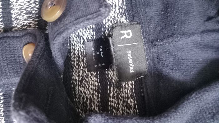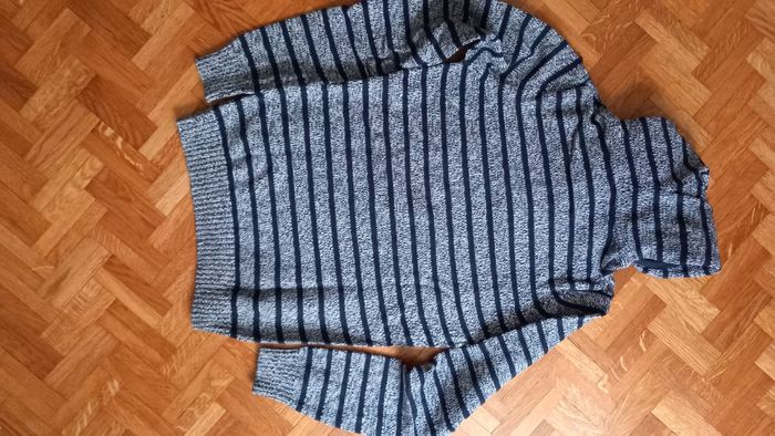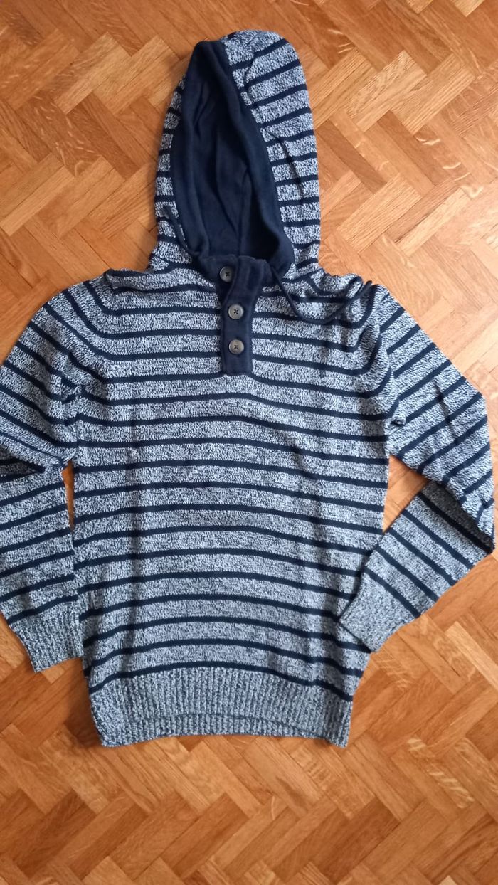 Pull rayé gris chiné et marine Avec capuche et col boutonné En coton La redoute Taille S Peu porté