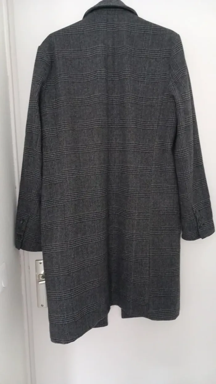 Manteau Kiabi Taille M Tons gris, doublure noire 3 boutons, 2 poches avant, 1 poche intérieure porte-feuille 3 boutons aux extrémités des manches Chaud Plus d'étiquette de composition