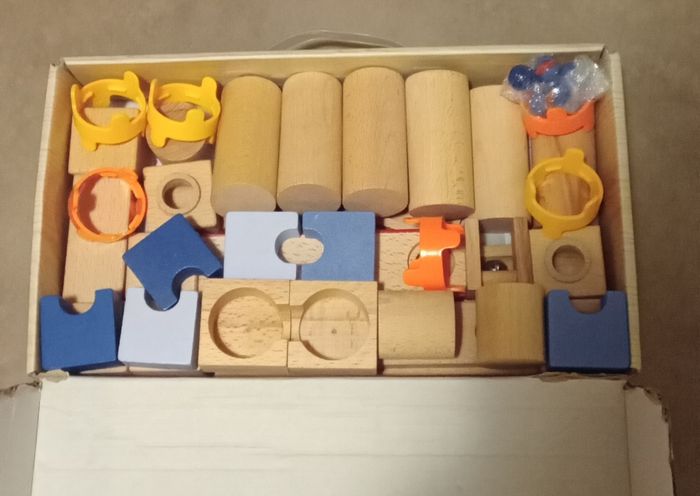 Circuit à billes Cascade Playtive junior. 3-10 ans. 35 pieces. Rails en bois de hêtre. Jeu créatif avec de nombreuses possibilités de montage.