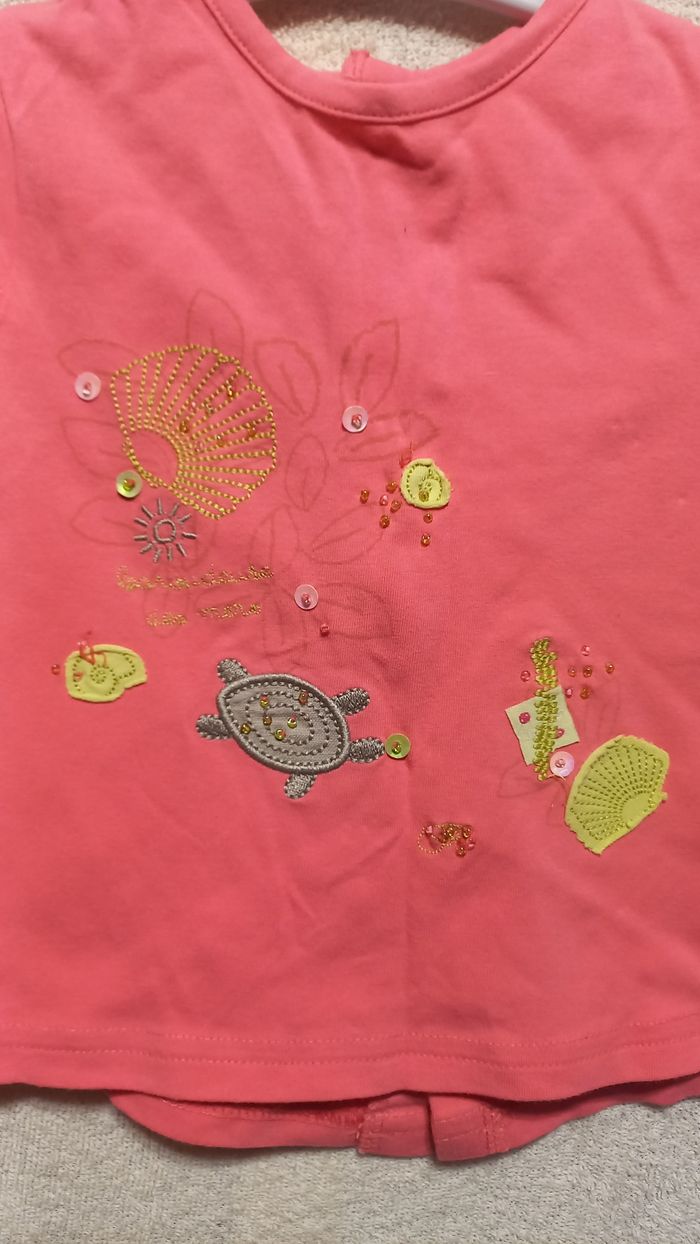 Débardeur fille 18 mois Marque absorba Couleur rose Boutons dans le dos de haut en bas Déco tortue et coquillages Bon état Envoi possible