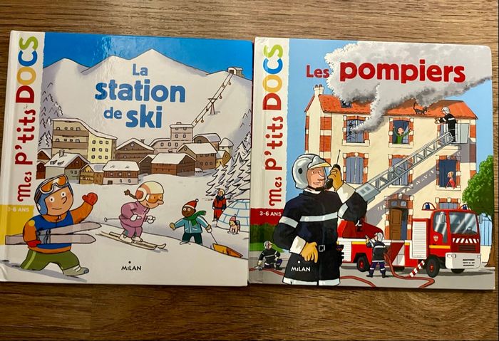 Lot de deux livres Mes p’tits docs aux éditions Milan La station de ski Les pompiers