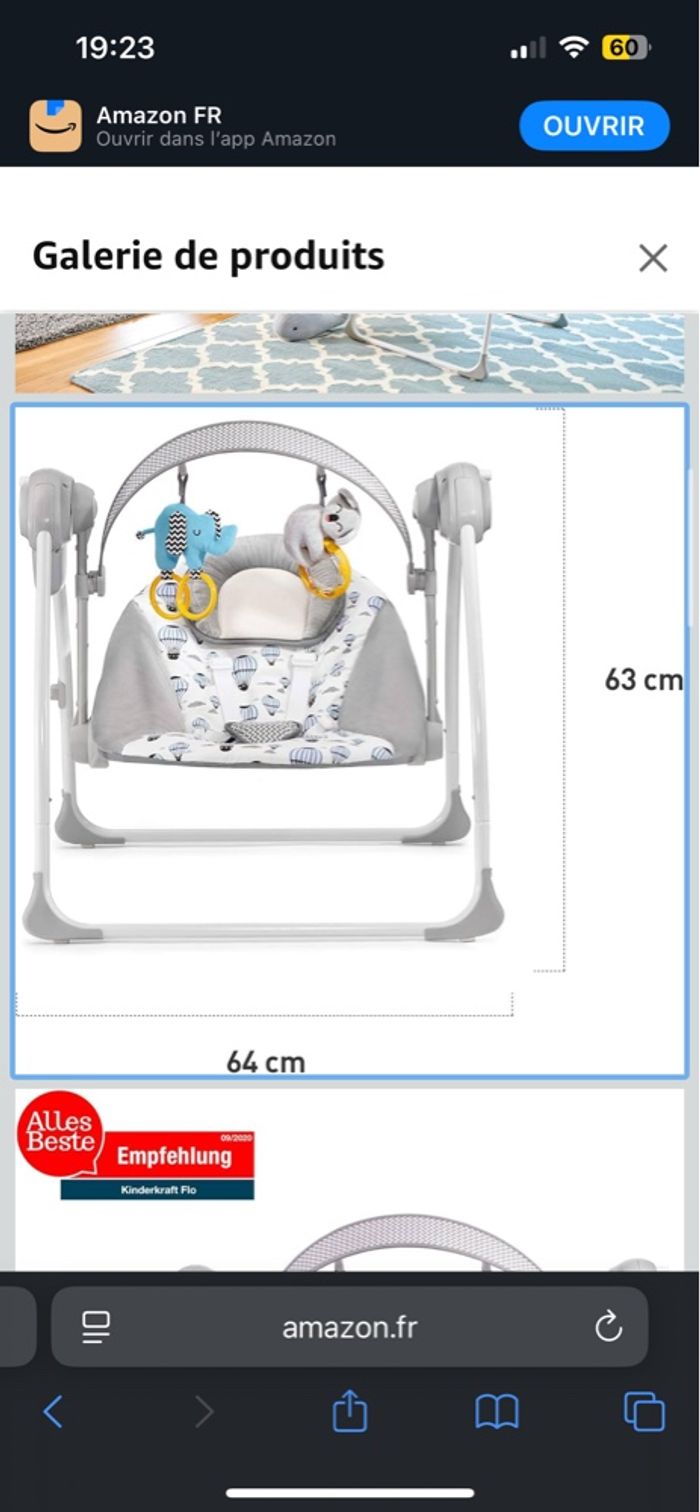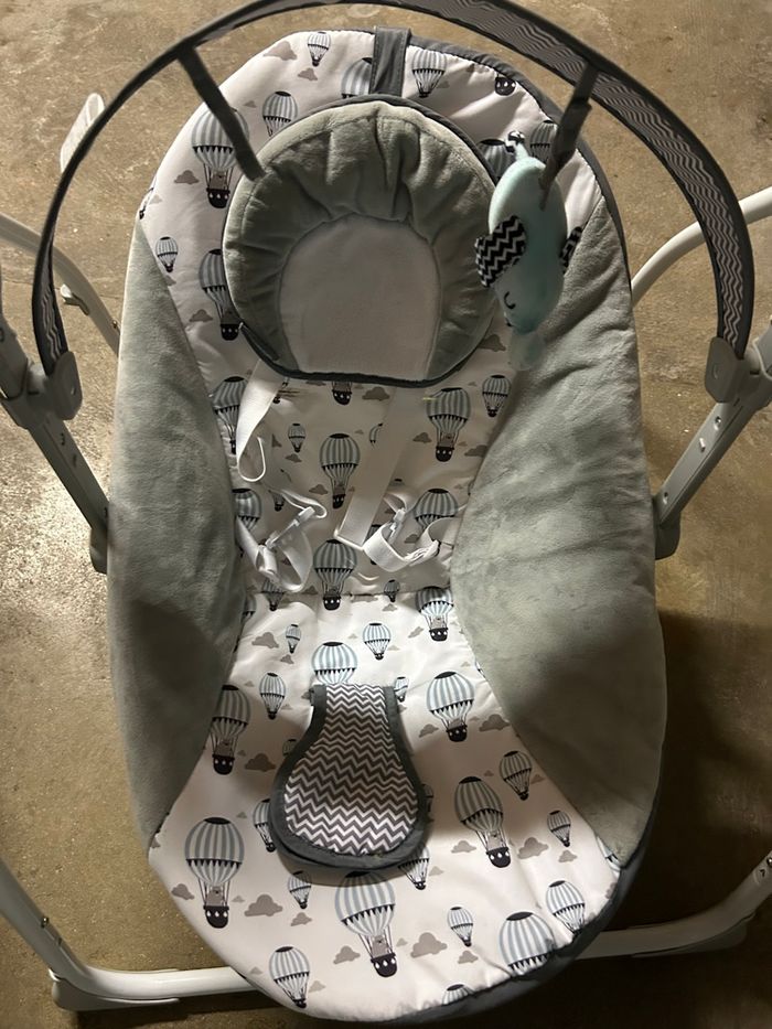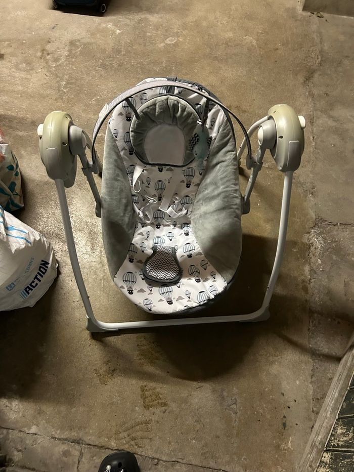 Transat et balancelle électrique de la marque kinderkraft de couleur grise et blanche. Vendu avec moustiquaire, chargeur, et arche de jeux. N’hésitez soit à venir récupérer soit envoie rapide et efficace 🌸📦
