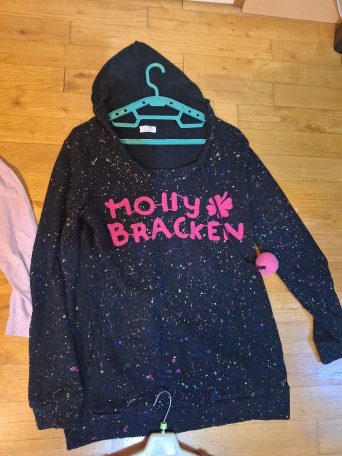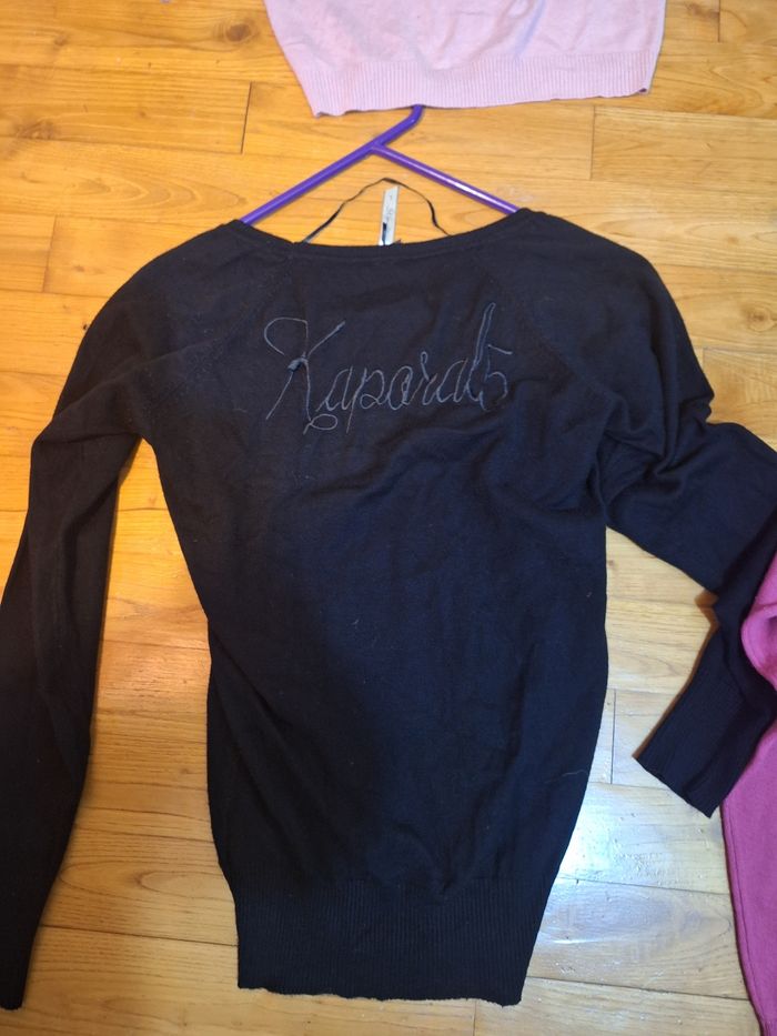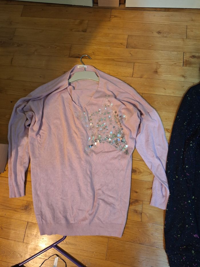 Je vends ce lot contenant: Un.pull noir kaporal taille L Un.pull molly braken.sans taille mais va pour du L Un pull rose Green coloré etiquette coupée Loose Un.pull rose étoile taille u.ique Prix du lot 20 euros
